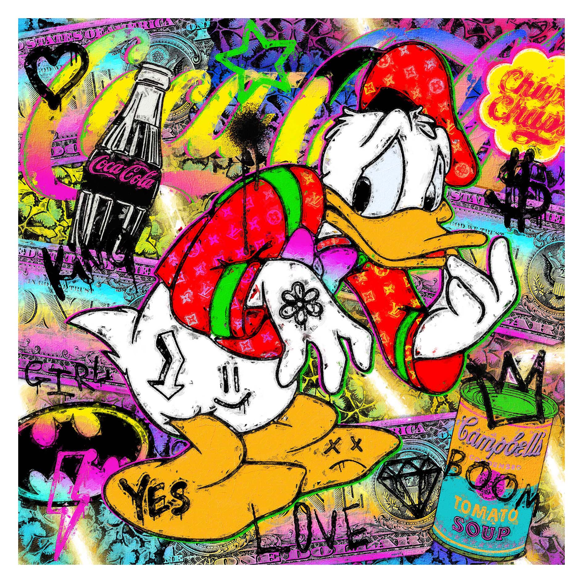 Lost Dreams portrays a nostalgic yet playful vision of pop culture, where familiar characters express irony, vulnerability and charm. Surrounded by vibrant graffiti, luxury patterns and street art symbols, the figure becomes a reflection of modern disillusion and the search for meaning in a world of excess and fantasy.